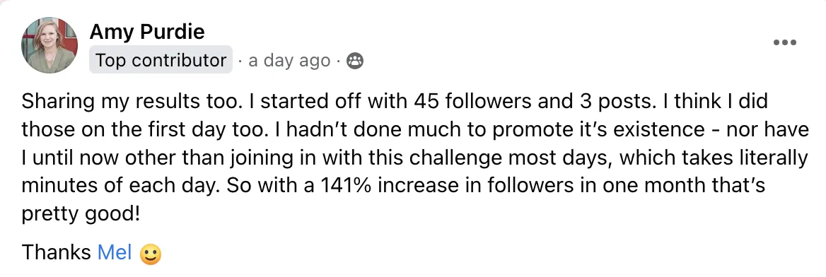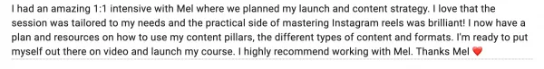"Mel helped me shift my visibility fears and I no longer think I have nothing interesting to say"